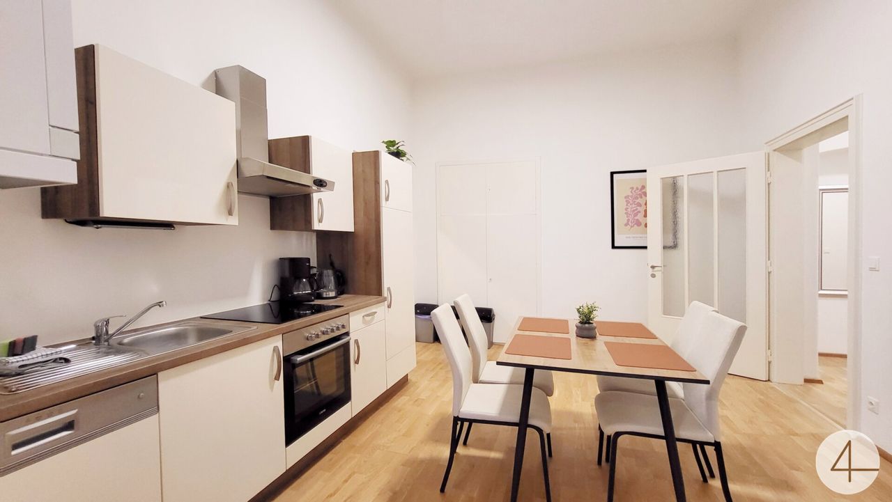 Die Wohnung besticht durch hohe Räume, große Fenster und eine durchdachte Raumaufteilung. Zwei geräumige Schlafzimmer bieten ausreichend Platz für Paare, Familien oder als WG. Die moderne Küche und das zeitgemäße Badezimmer ergänzen das stimmige Gesamtbild.