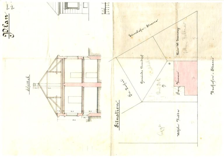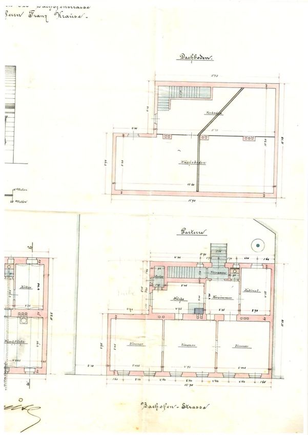 Die Liegenschaft besteht aus Souterrain , Obergeschoss , Dachgeschoss und Nebengebäude.