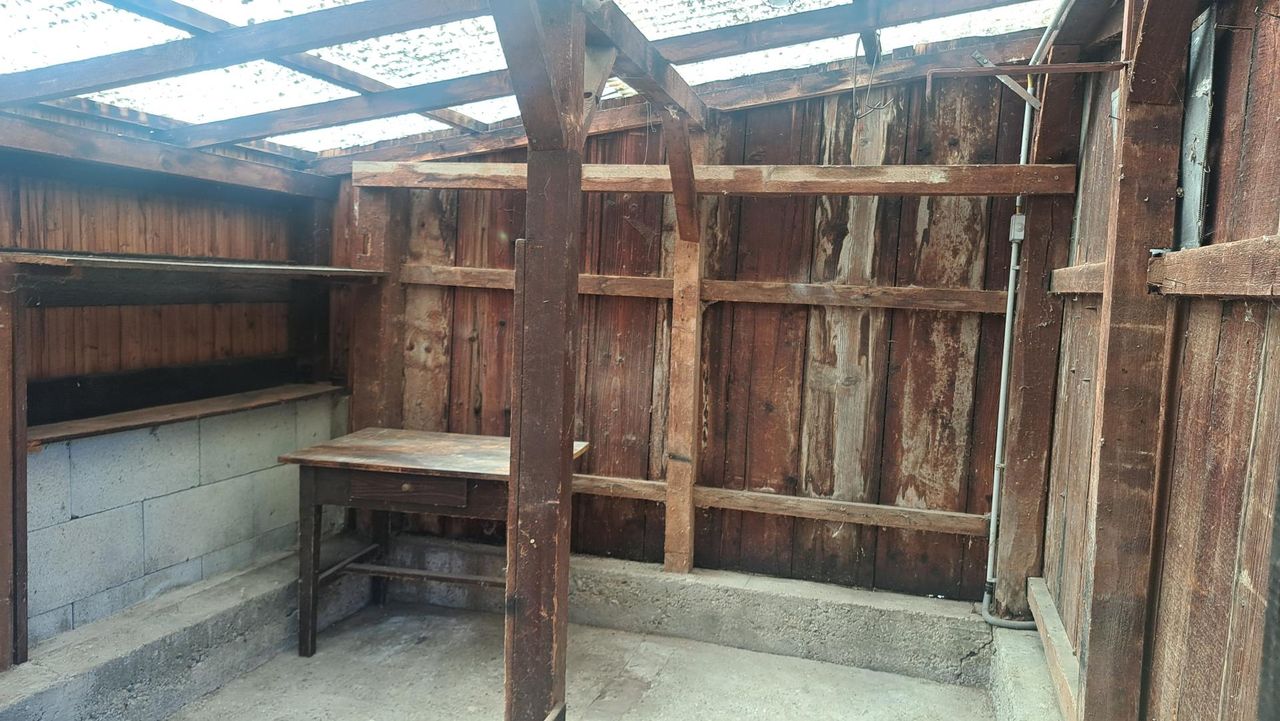 Am Ende des Gemüsegartens befindet sich ein rustikales Nebengebäude aus Holz. Dieses bietet weiteren Stauraum und schützt gleichzeitig vor neugierigen Blicken.