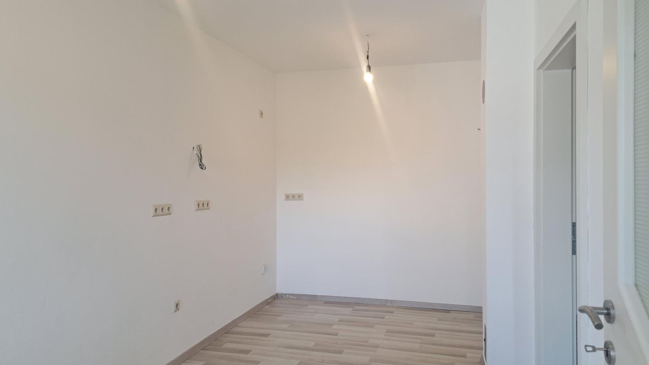 Der Zugang zum Haus erfolgt über eine pflegeleichte, geflieste Treppe, die zu einer hellen Veranda führt. Von hier gelangen Sie direkt in die gemütliche Küche mit praktischem Essplatz. Die Küche wird derzeit mit einem Einzelofen beheizt, alternativ steht eine Elektroheizung zur Verfügung. An die Küche schließt sich ein großzügiges Wohn-Schlafzimmer an. Von hier aus ist das Bad mit WC bequem zugänglich.