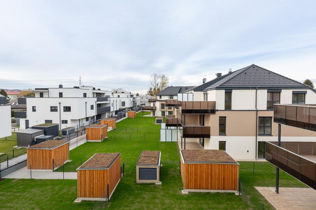 Die Eigentumsobjekte sind südwest-seitig ausgerichtet. Die offene Bauweise und optimale Orientierung der Wohnungen mit Ausblick auf die Grünräume gewährleistet maximale Wohnqualität. Besonderes Augenmerk wurde neben der Architektur auf die bauliche Qualität und hochwertige Ausstattung gelegt.