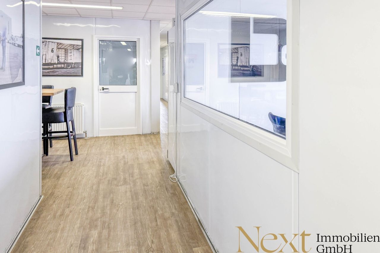 Das Objekt verfügt über großzügige Freiflächen für zusätzlichen Platzbedarf oder logistische Abläufe. Zudem stehen fünf Stellplätze für Sattelschlepper zur Verfügung.