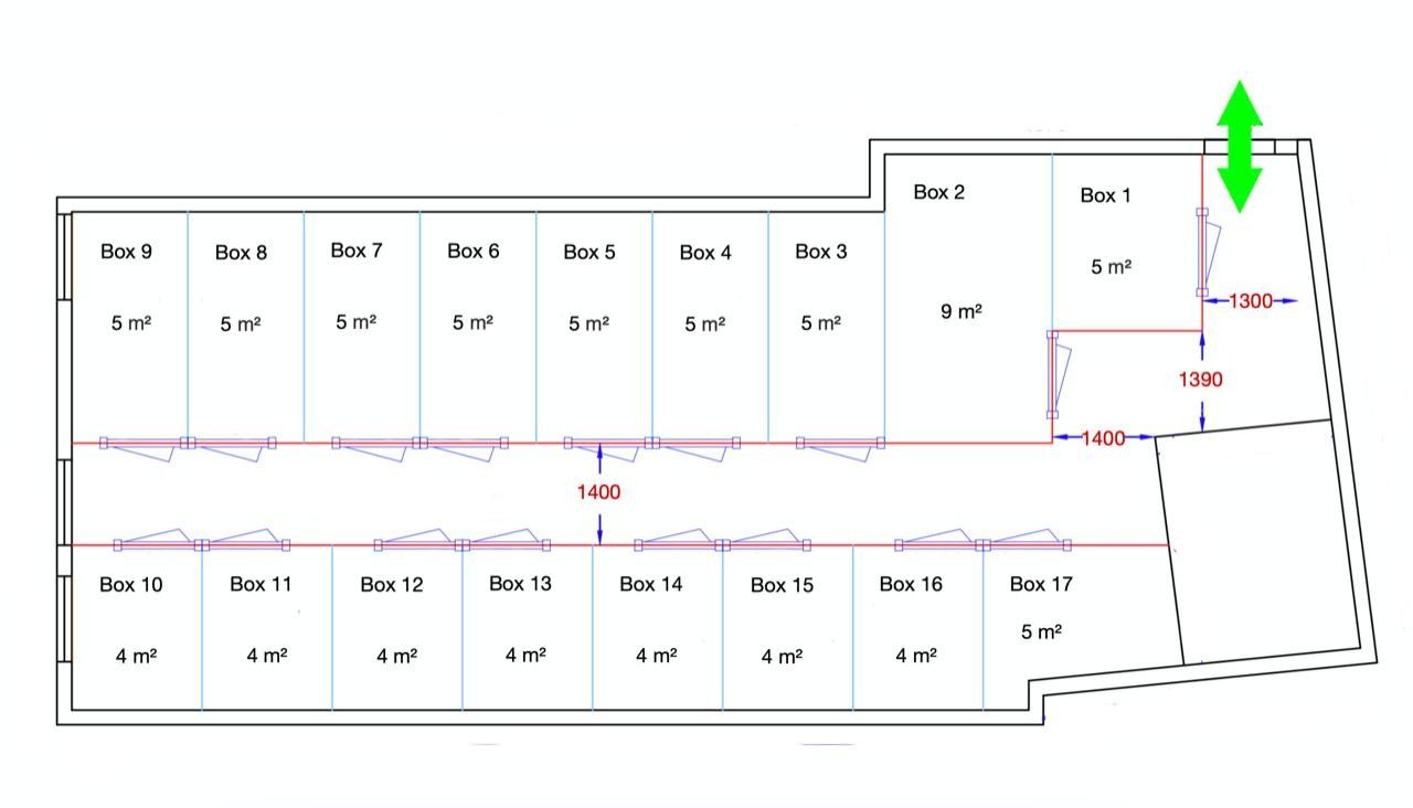 Im 1. Obergeschoss dieses Hauses wurden neue Lagerflächen in der Größe zwischen 4 und 9 Quadratmeter errichtet.