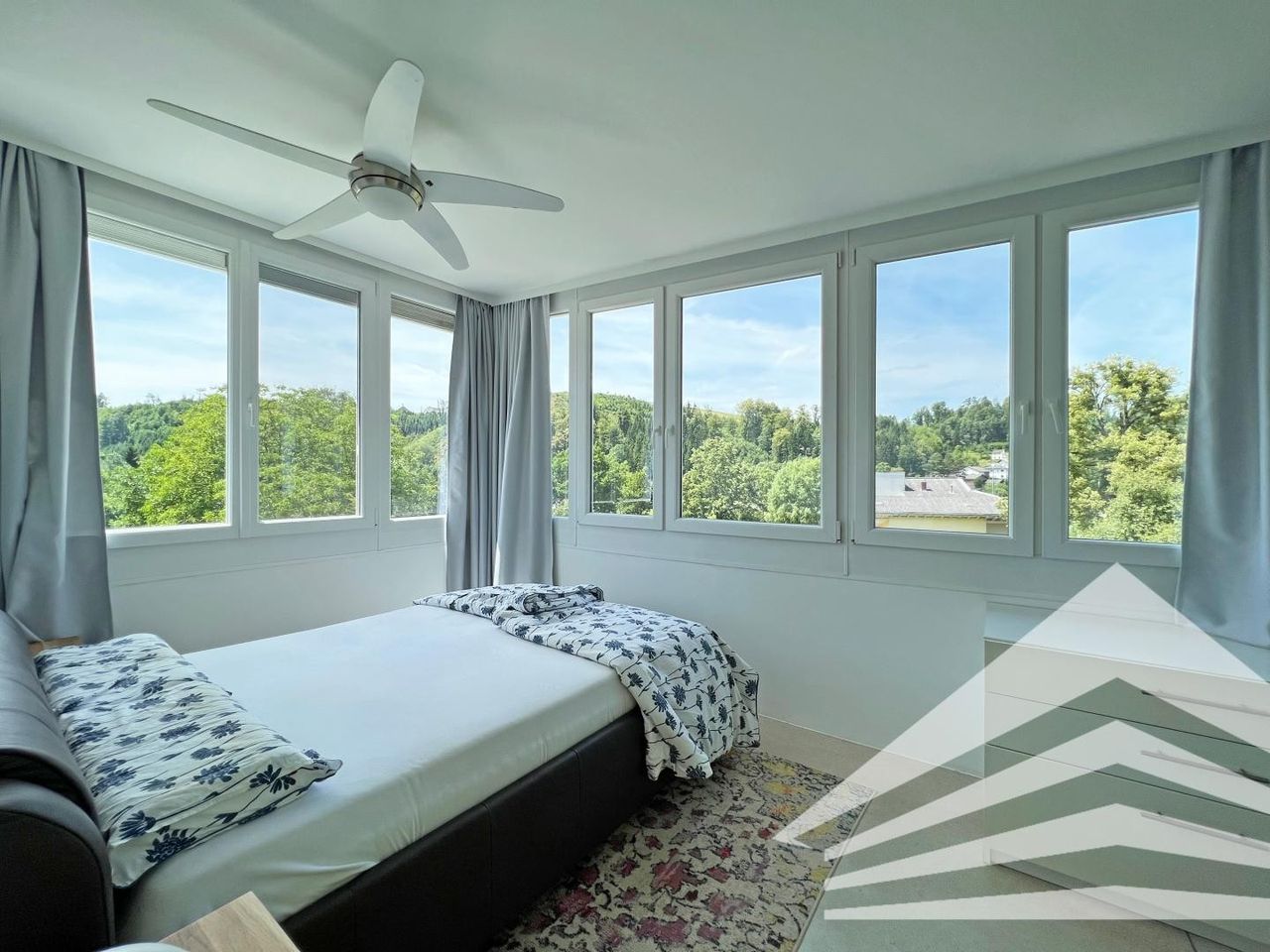 - Großes Schlafzimmer mit begehbarem Kleiderschrank und wunderschönem Blick ins Grüne