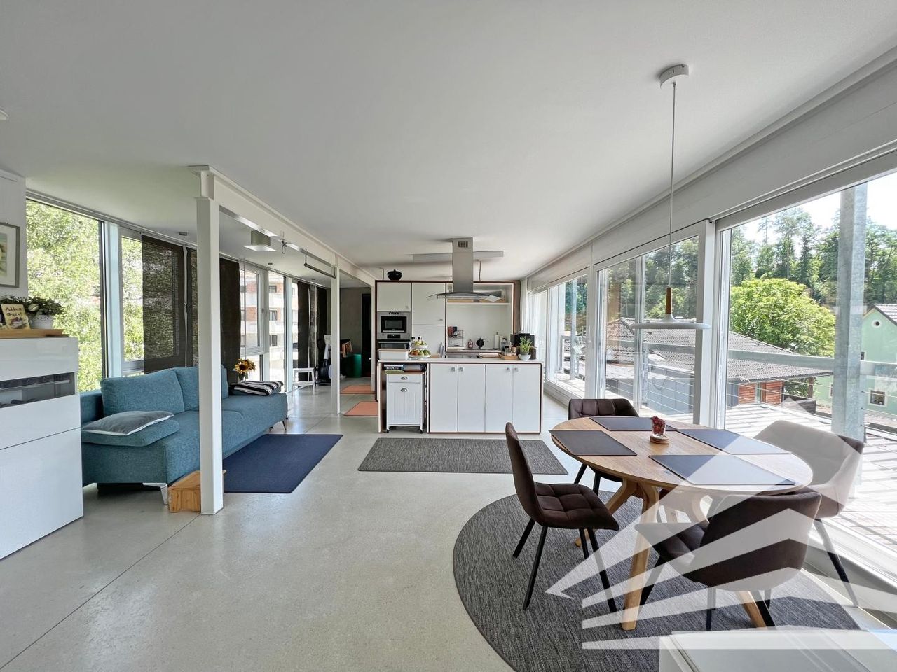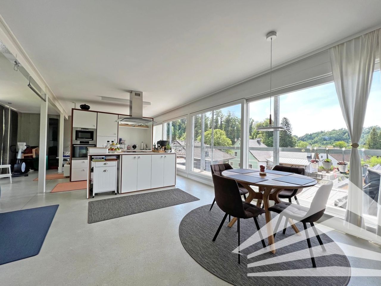 - Lichtdurchfluteter und offener Koch-/Essbereich mit beidseitiger, bodentiefer Fensterfront I Süd-West Loggia