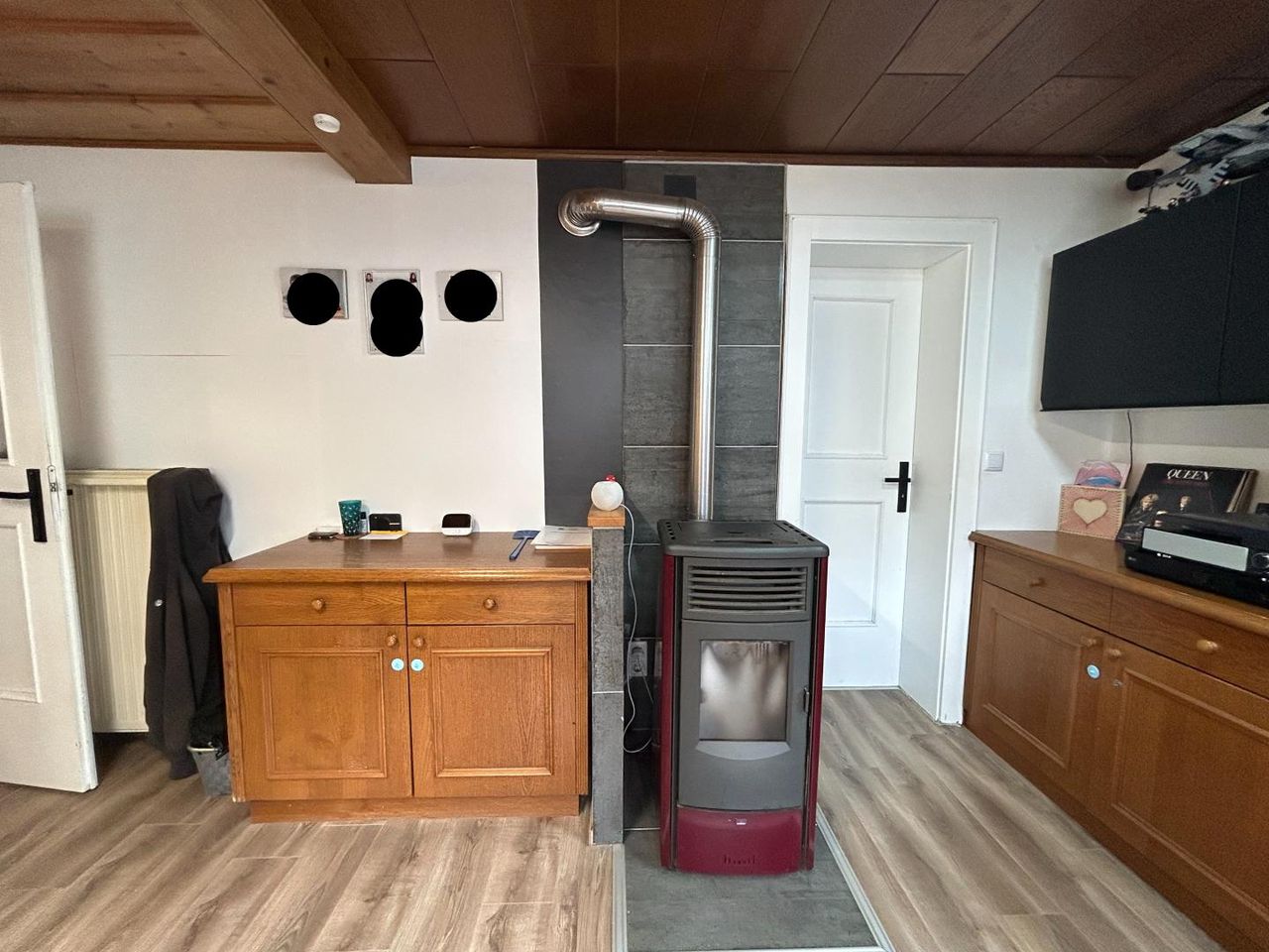 Das Haus wird mit einer, im Jahr 2023 installierten Luft - Wärmepumpe und zusätzlich mit einem Pelletssofen in der Küche beheizt.