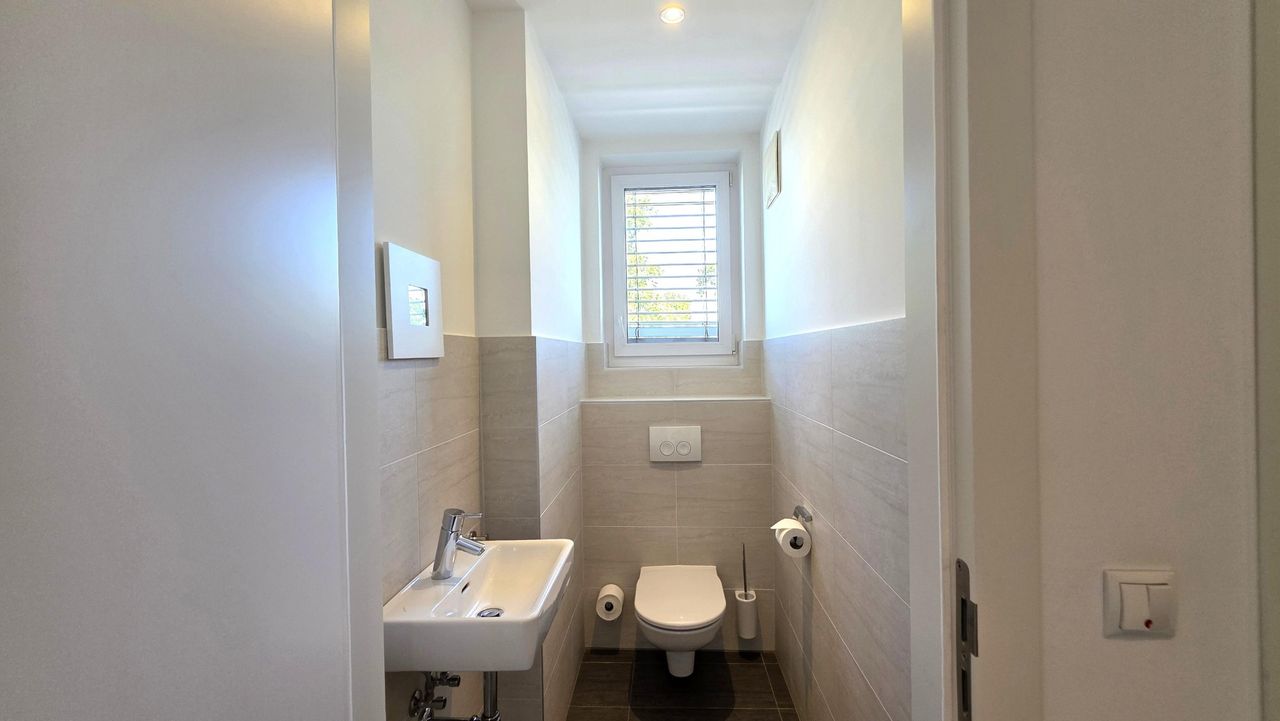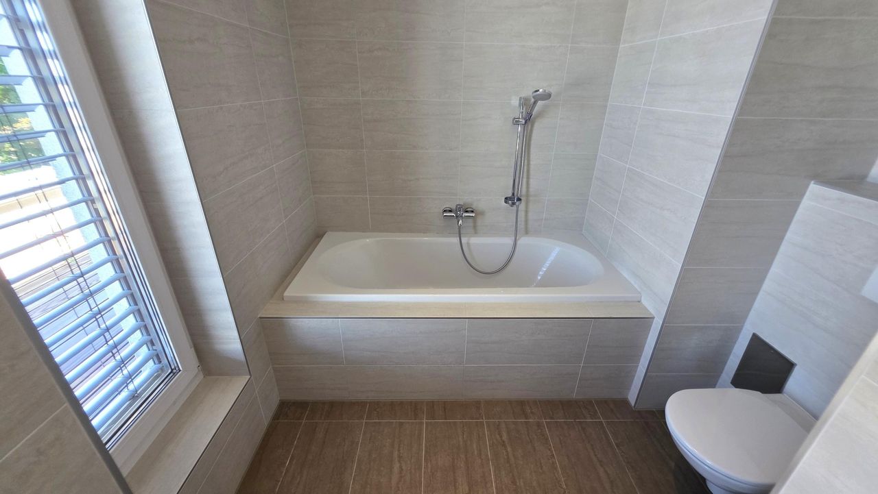 • schicke Kacheln und Markenarmaturen im Bad und WC