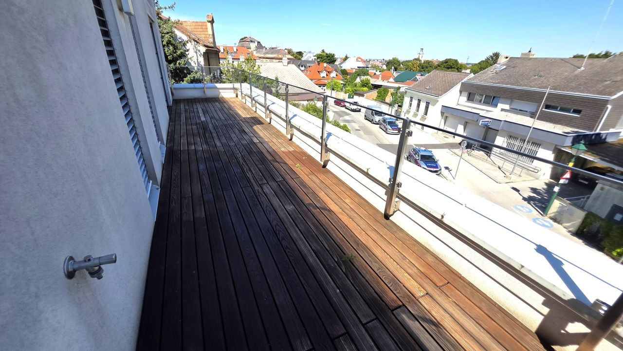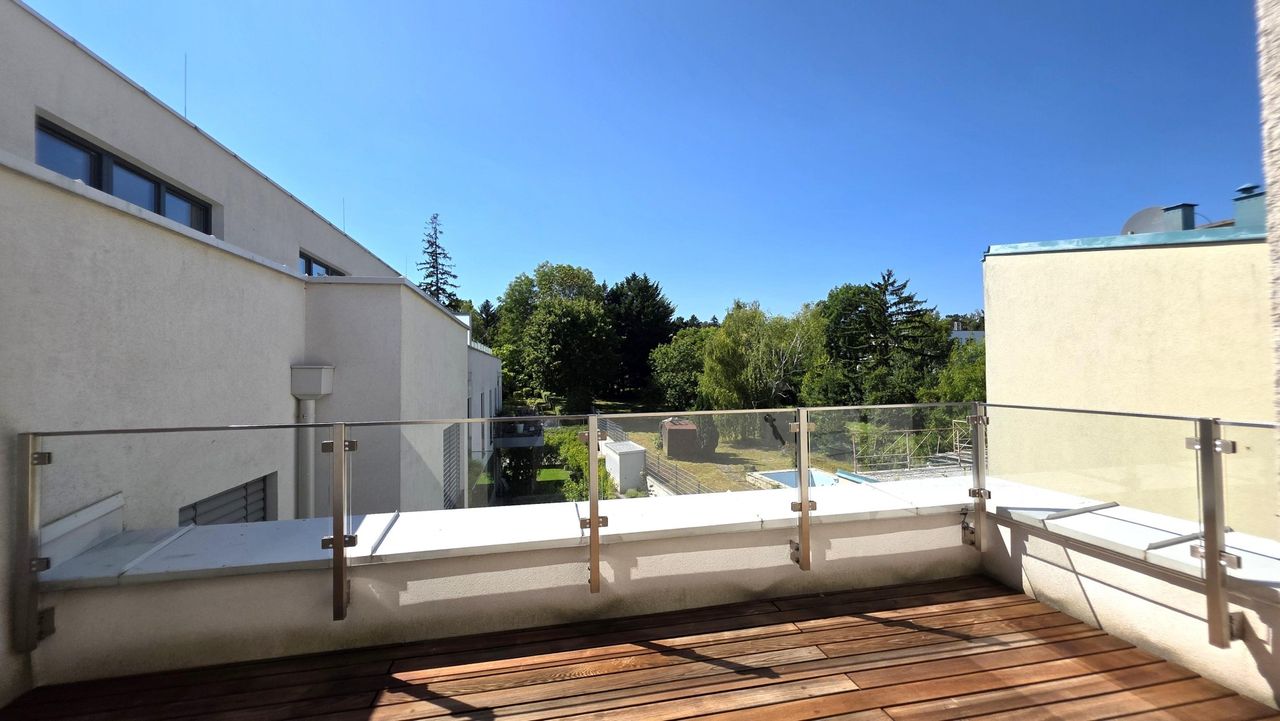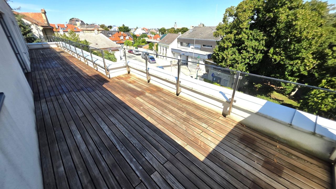 ZUR VERMIETUNG gelangt diese klimatisierte Neubauwohnung in der Liechtensteinstraße, direkt beim Schlosspark Hunyadi nahe der Wiener Stadtgrenze. Absolutes Highlight sind die große, ostseitige und die kleine, westseitige Dachterrassen. Die hochwertige Luxus-Ausstattung erfüllt alle Anforderungen modernen Wohnens. Im Untergeschoss steht Ihnen ein großer Einlagerungsraum mit Stromversorgung zur Verfügung. Garagenplätze können je nach Verfügbarkeit direkt im Haus angemietet werden. Der wunderschöne Gemeinschaftsgarten mit Kinderspielplatz im Innenhof rundet dieses wunderbare Angebot ab. RAUMAUFTEILUNG IN STICHWORTEN • Vorraum und Garderobe • großzügiger Wohnraum mit offener Küche und Essbereich • 2 Schlafzimmer • Flur • Badezimmer mit Badewanne, Dusche, Doppelwaschbecken und WC • separates WC...