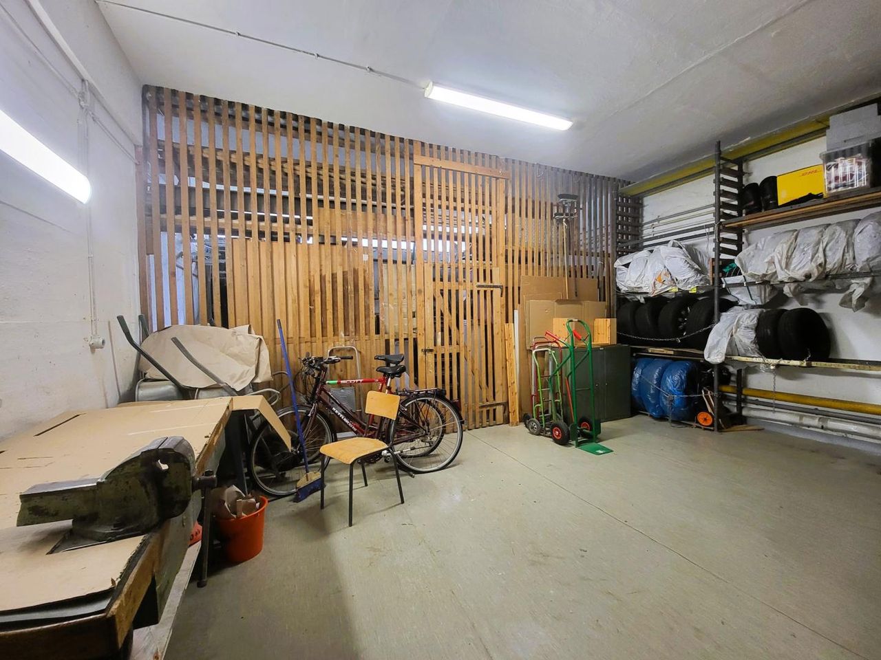SONSTIGES: Ein zusätzlicher, ca. 5m² großer Abstell- oder Einlagerungsraum im Obergeschoss ist der Wohnung zugeordnet; für die Allgemeinheit stehen ein Kinderwagen- und Fahrradabstellraum, Waschküche mit Trockenraum und ein Hobbyraum, welcher mit einer Werkbank und einem Reifendepot-Regal ausgestattet ist, zur Verfügung.