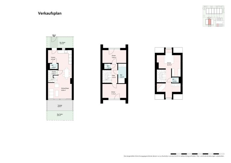 Darüber hinaus verfügen sämtliche Einheiten über Terrassen, teils Balkone sowie Eigengärten.
