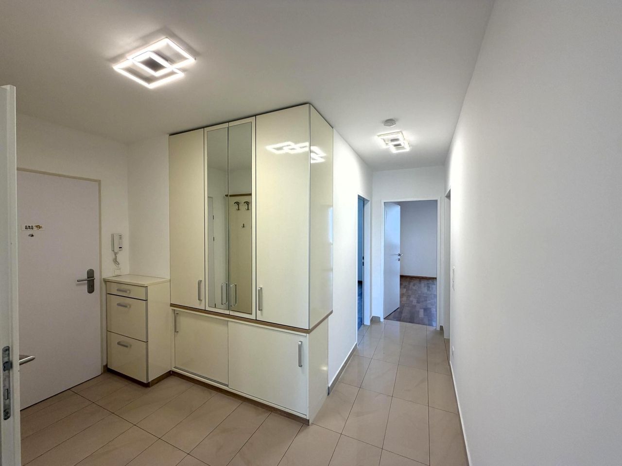 All rooms are centrally accessible and therefore guarantee maximum flexibility of use. The spacious living area with access to the loggia forms the heart of the apartment. The approx. 17 m² square loggia invites you to linger outside and ideally extends the living space.
