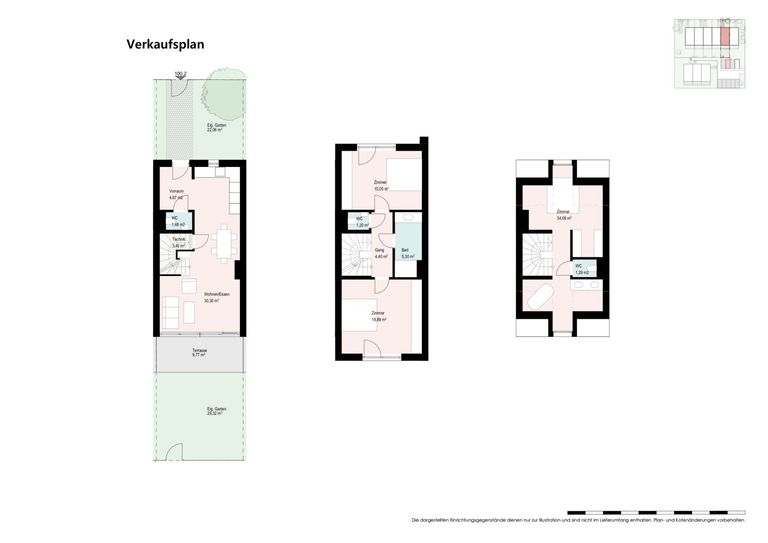 Darüber hinaus verfügen sämtliche Einheiten über Terrassen, teils Balkone sowie Eigengärten.