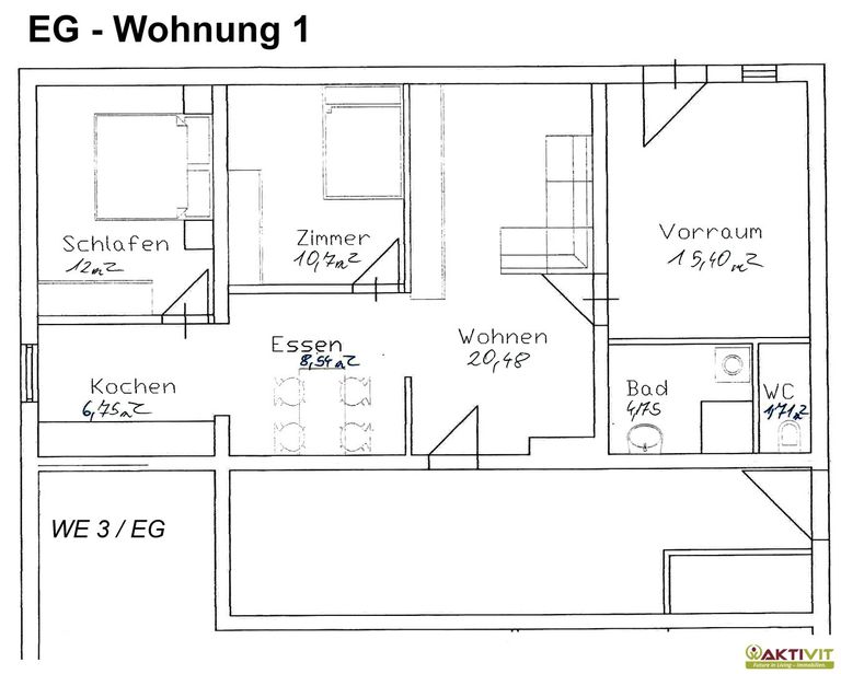 - Drei Wohneinheiten mit insgesamt ca. 309 m² Wohnfläche.