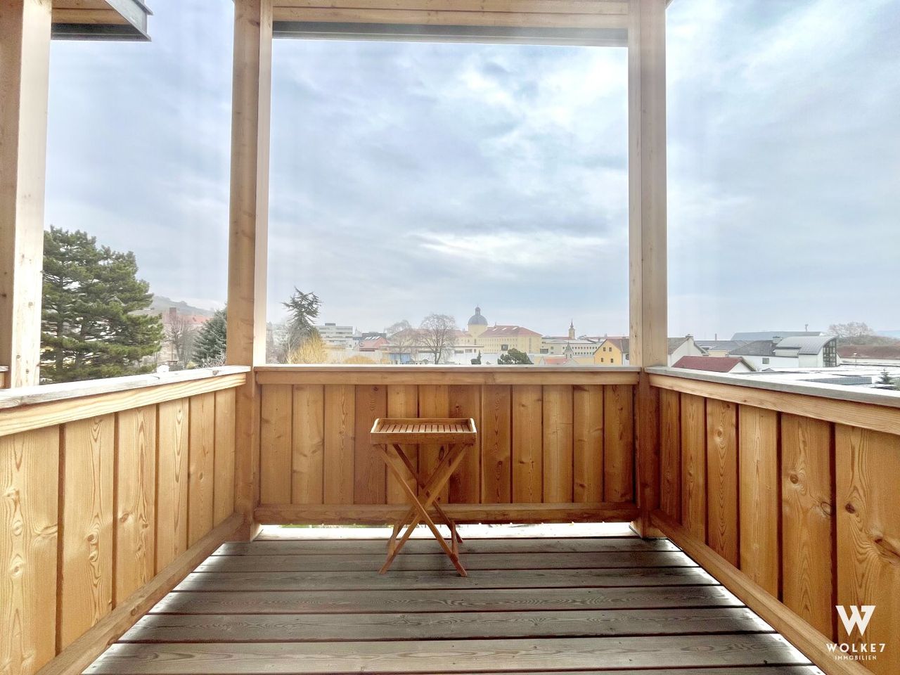 Ein besonderer Höhepunkt ist der Balkon, der einen malerischen Stadtblick bietet.