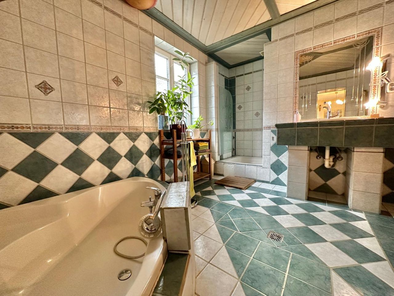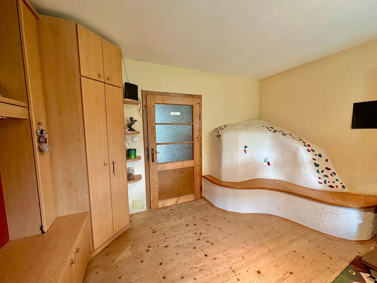 Zusätzlich sorgt ein zentral platzierter Kachelofen für wohlige Wärme in bis zu vier Bereichen.