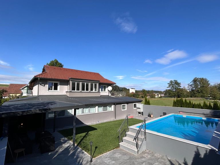 Zum Verkauf gelangt ein bereits saniertes Mehrfamilienhaus in einer ruhigen Siedlungslage mit traumhaften Grundstück und verfügt über drei getrennt begehbare Wohneinheiten inkl. Garage, Carport, beheiztem Pool, mehreren Parkplätzen sowie herrliche Außenbereiche. Die Liegenschaft kann als Ein/Mehrfamilienhaus bzw. als Anlageobjekt perfekt genutzt werden. Zwei der Wohneinheiten befinden sich im Erdgeschoss, eine davon im neu errichteten Zubau, die dritte Wohneinheit befindet sich im Obergeschoss und ist über das Stiegenhaus erreichbar. Raumaufteilung: Im Erdgeschoss befinden sich die ersten beiden Wohnungen welche aktuell als eine große Einheit genutzt wird und eine Wohnfläche von gesamt ca. 173 m² inkl. einer sonnig ausgerichteten Terrasse aufweist. Über...