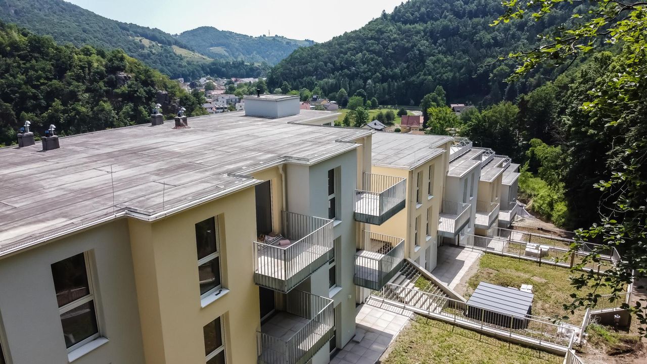 Neubauprojekt "Wohnen am Hiesberg - Kremstalblick" Provisionsfreie NEUBAU-Wohnungen – erholsam, nachhaltig und leistbar! Am westlichen Ortsende der idyllischen Marktgemeinde Senftenberg - umrandet von grünen Hügeln und Wäldern, unweit von Krems – wurde Ihr Traum von einem außergewöhnlichen und leistbaren neuen Zuhause verwirklicht! Auf einem Grundstück im Ausmaß von ca. 7.460 m² entstand ein Terrassenwohnbauprojekt mit 37 Wohnungen (50-80 Quadratmeter, 2-3 Zimmer) sowie Tiefgaragenstellplätze. Nachhaltigkeit und Leistbarkeit werden großgeschrieben: Auf den Flachdächern der Wohnhäuser ist eine Photovoltaik Anlage errichtet. Die erzeugte Energie wird in das Stromnetz eingespeist und senkt somit die Betriebskosten. Überschüssige, nicht verbrauchte Energie wird in das Stromnetz des...