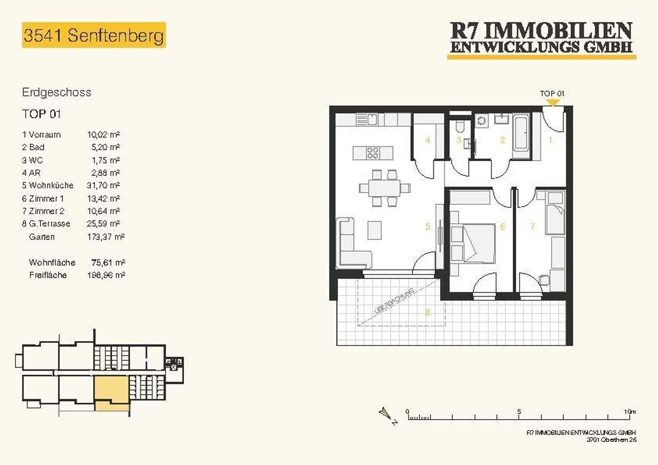 Auf einem Grundstück im Ausmaß von ca. 7.460 m² entstand ein Terrassenwohnbauprojekt mit 37 Wohnungen (50-80 Quadratmeter, 2-3 Zimmer) sowie Tiefgaragenstellplätze.