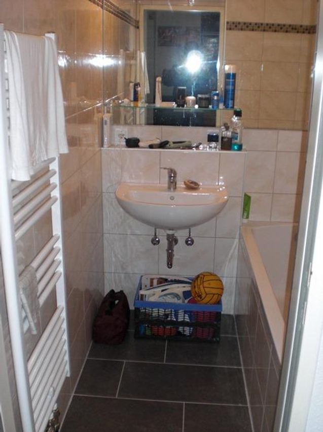 BAD (Badewanne, Waschtisch, Handtuchheizkörper, verfliest, kompl. neu 2012)