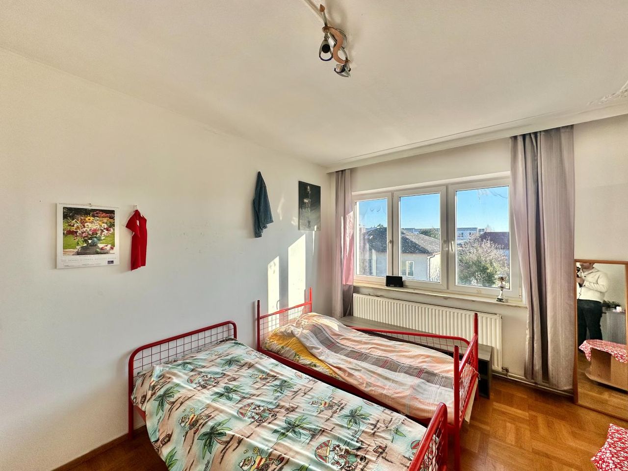 Raumaufteilung Obergeschoss: Zimmer 1, Zimmer 2, Zimmer 3, Zimmer 4, Badezimmer mit Dusche und WC, Gang mit Ausgang auf die Dachterrasse.