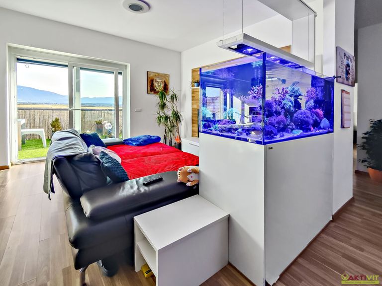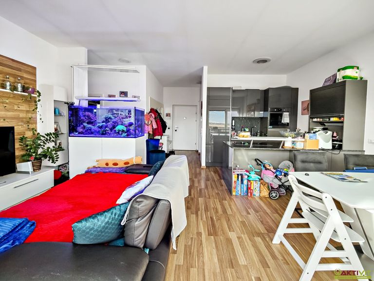 Auf rund 69 m² Wohnfläche verteilen sich ein einladender Vorraum, ein großzügiges Wohn- und Esszimmer mit offener Küche, zwei Schlafzimmer, ein Badezimmer, ein getrenntes WC.
