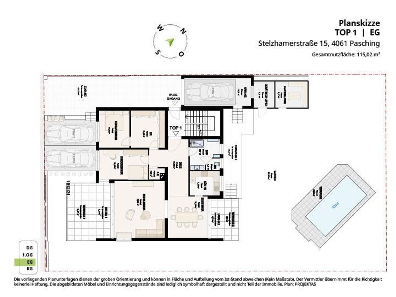 Gartentraum mit Terrasse & Pool in bester Lage Zum Kauf steht diese großzügige Gartenwohnung im Ortsteil Langholzfeld in der beliebten Gemeinde Pasching - Nur einen Steinwurf von der PlusCity entfernt. Das äußerst gepflegte, ziegelmassive Wohnhaus mit nur drei Wohnungen wurde im Jahr 1977 erbaut und 2013 umfangreich renoviert bzw. um ein Stockwerk erweitert. Im Zuge der Aufstockung wurde selbstverständlich auch das gesamte Dach sowie Heizung und Elektrik erneuert. Ebenso wurde das Haus mit einem Vollwärmeschutz versehen. Im Überblick: - sehr gepflegtes Haus mit nur drei Wohnungen - ca. 114 m² Wohnfläche im EG (teilw. möbliert) - ca. 339 m² Privatgarten...