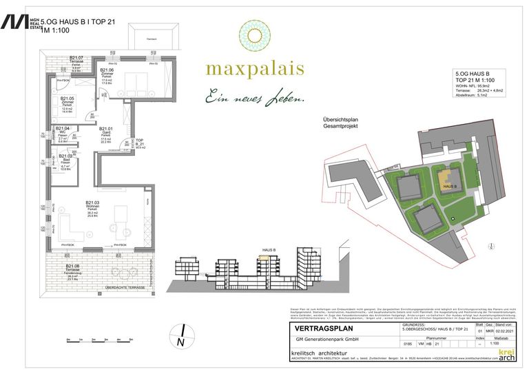 Im prestigeträchtigen MaxPalais erwartet Sie eine einzigartige Penthousewohnung, die urbanen Luxus und atemberaubende Panoramablicke vereint. Auf großzügigen 95,90 m² Wohnfläche treffen zeitlose Eleganz, lichtdurchflutete Architektur und hochwertigste Ausstattung aufeinander. Das Highlight? Die beeindruckende 31,10 m² große Terrasse, die Ihnen unvergleichliche Ausblicke auf die Stadt und die majestätische Bergkulisse bietet.