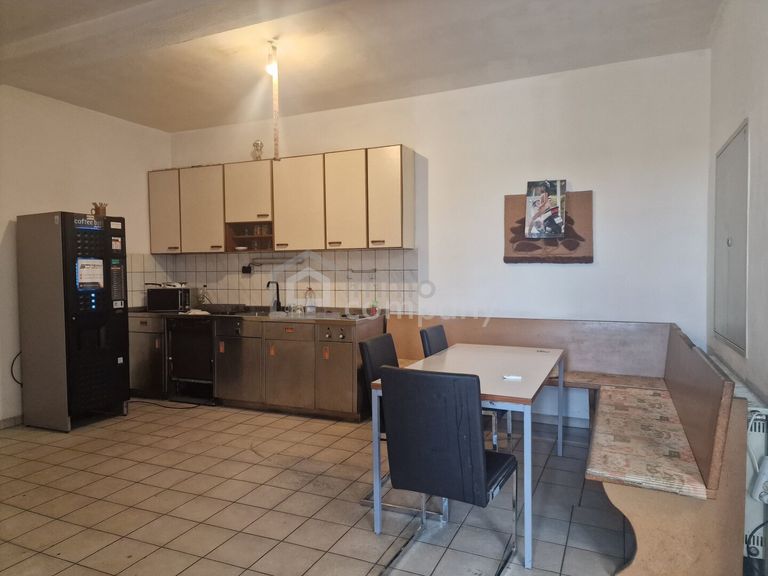 Das Bürogebäude verfügt über 2 Büroräume und einen großen Aufenthaltsraum mit einer Küche, in der Sie sich mit einem frischen Kaffee oder Tee stärken können. Auch die 5 WCs und 2 Bäder bieten ausreichend Platz und Komfort für Ihre Mitarbeiter und Kunden. Des Weiteren gibt es einen Wasch- und Trockenraum sowie einen Abstellraum, in dem Sie Platz für Ihre Arbeitsmaterialien finden. Im Obergeschoss befinden sich insgesamt 6 Zimmer , die für die Mitarbeiter für Übernachtungen zur Verfügung stehen. Die Beheizung erfolgt durch eine moderne Öl-Zentralheizung, die für wohlige Wärme in den kalten Wintermonaten sorgt.