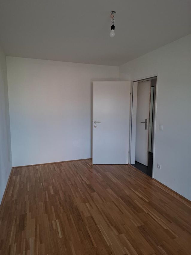 Ausstattung der Wohnung: versiegelter heller Eiche-Parkettboden in Wohnküche und im Schlafzimmer, helle graue Fliesen in Vorraum, Abstellraum, Bad, WC; weiße Innentüren, Sonnenschutz durch außen liegende Schiebeläden, die in verschiedenen Farben ausgeführt wurden. Ein Kellerabteil wird mitvermietet.