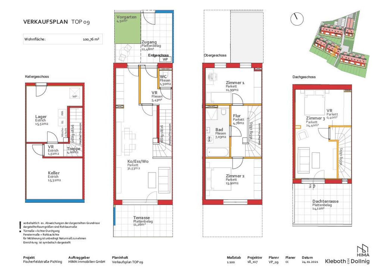 Das Haus 09 ist ein kompaktes Mittelreihenhaus und teilt sich auf wie folgt: