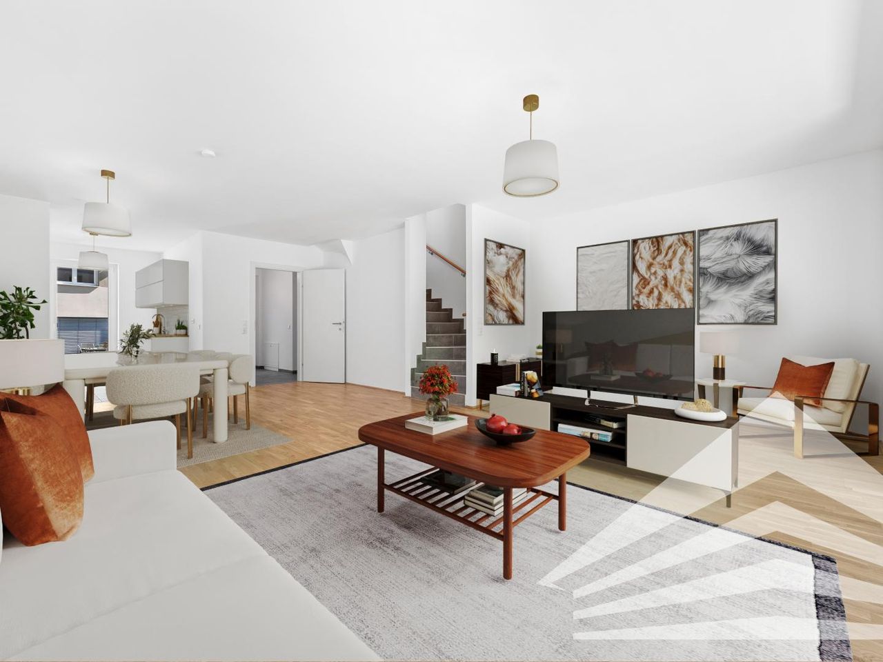 Für ein besseres räumliches Verständnis können einzelne Bilder digital möbliert worden sein und zeigen beispielhafte Einrichtungsvorschläge. Die abgebildeten Möbel sind nicht im Angebot enthalten.