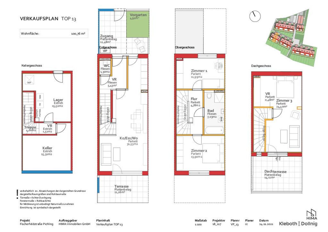Das Haus 13 ist ein kompaktes Mittelreihenhaus und teilt sich auf wie folgt: