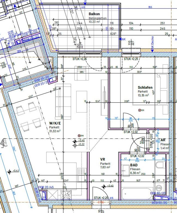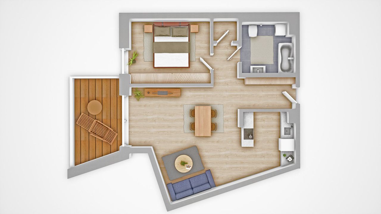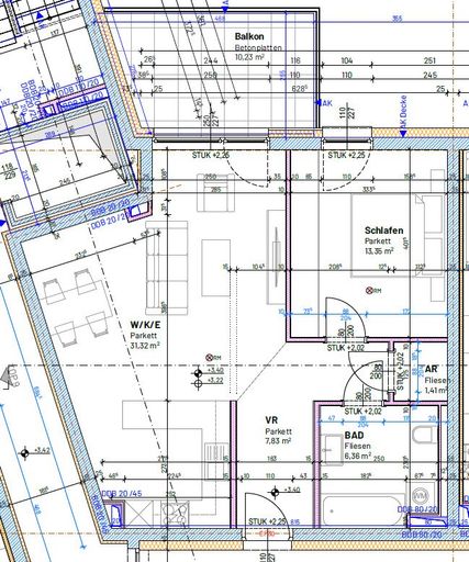 - Vorraum - Wohn/Ess/Küche - Bad mit WC - Abstellraum - Schlafzimmer - Balkon