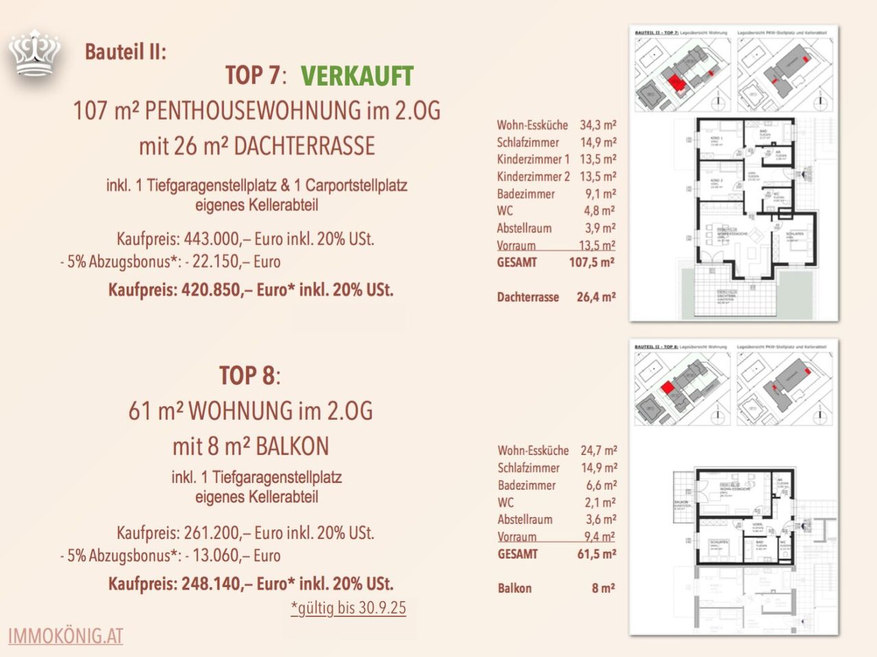 - inkludiert 1 eigenes Kellerabteil, 1 Tiefgaragenstellplatz