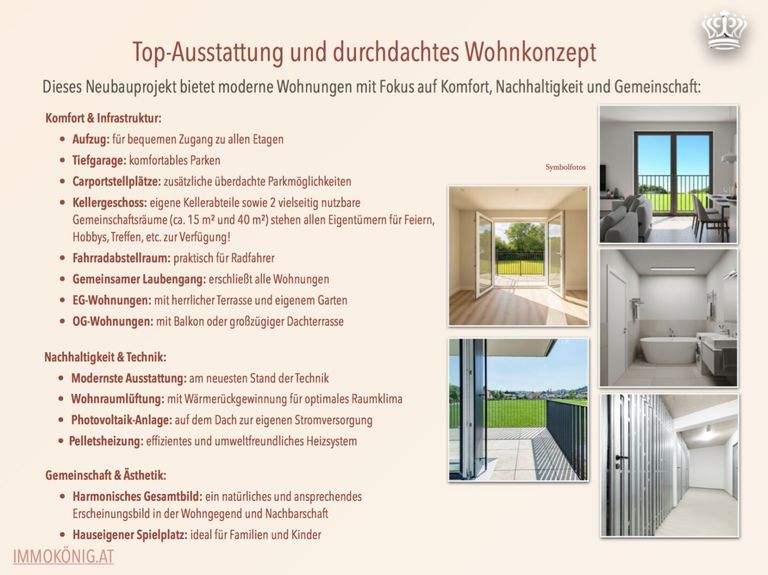 Dieses Neubauprojekt bietet moderne Wohnungen mit Fokus auf Komfort, Nachhaltigkeit und Gemeinschaft: