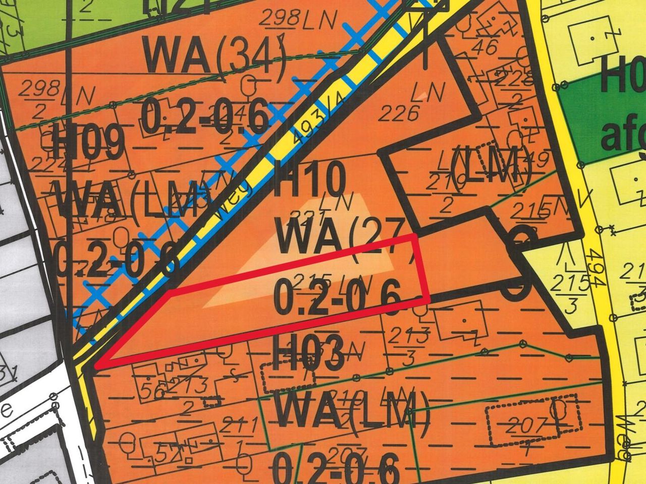 Derzeit gilt für das Grundstück eine Bebauungsdichte von 0,2 – 0,4 mit einer Widmung WA ( Wohnen Allgemein).