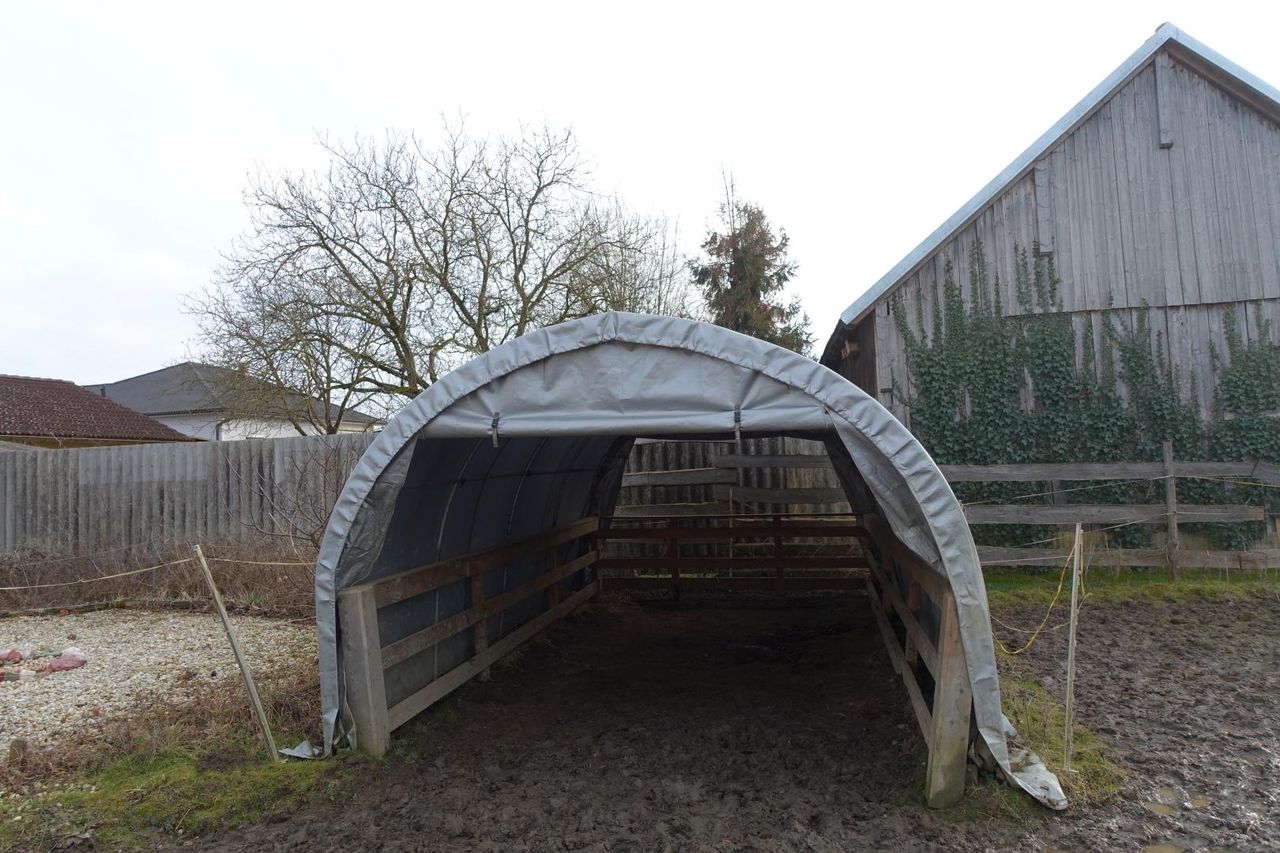 Der Saloon, der 2012 ausgebaut wurde, bietet nicht nur ein WC, sondern auch ausreichend Stauraum für Zubehör und Futter. Der große Unterstellplatz entspricht den behördlichen Auflagen und ist mit einer säurefesten Platte sowie einem sturmfesten Dach ausgestattet. Der Mistplatz ist ebenfalls mit einer säurefesten Platte versehen, und ein Mistvertrag, der übernommen werden kann, sorgt für eine unkomplizierte Entsorgung.