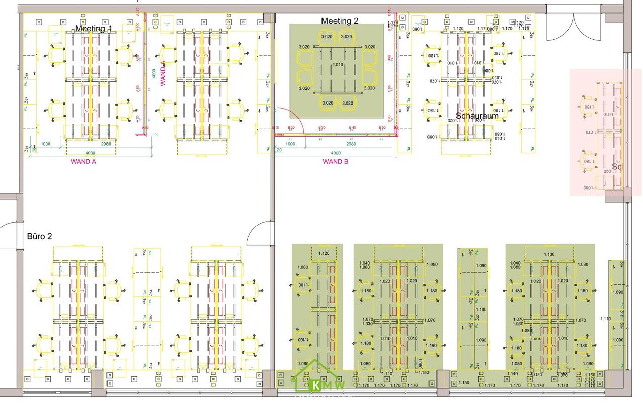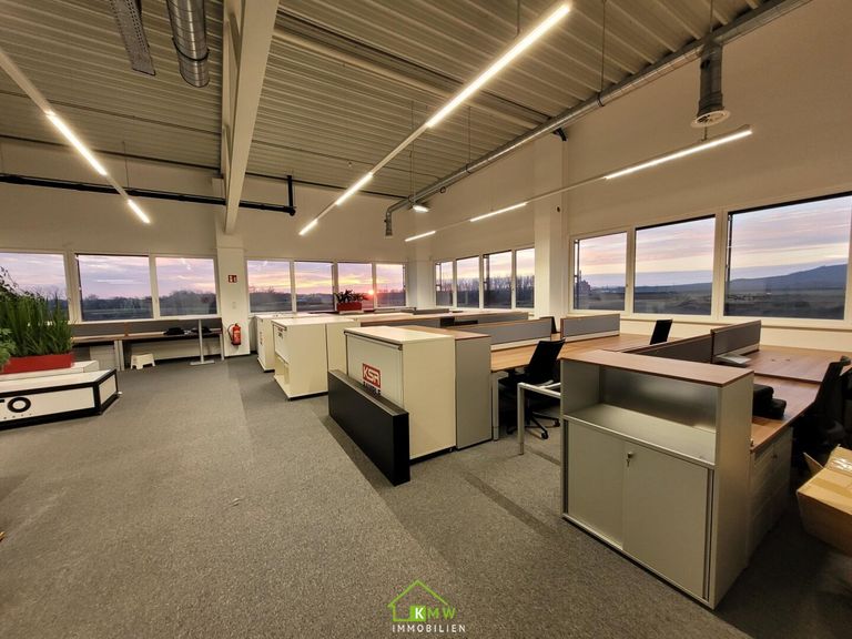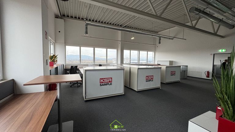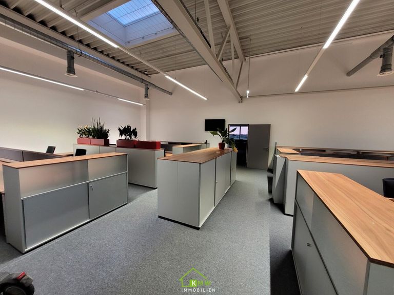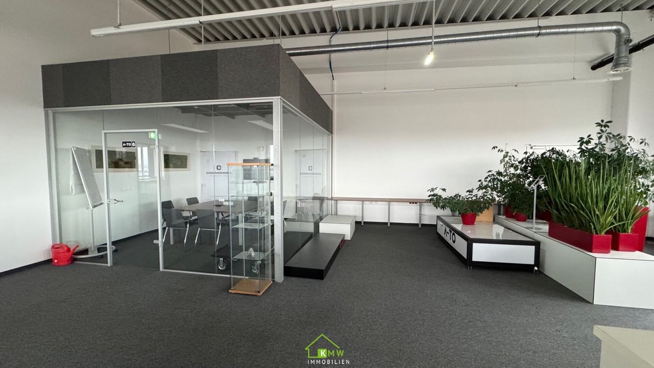 Die voll ausgestatteten Büroflächen teilen sich in 2 große Räume und einen verglasten Präsentationsraum.