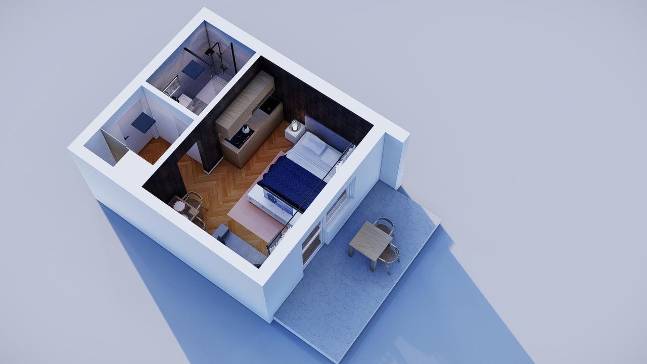 Vorraum, Bad/WC/Du, Wohn/Schlaf-Koch und Essbereich