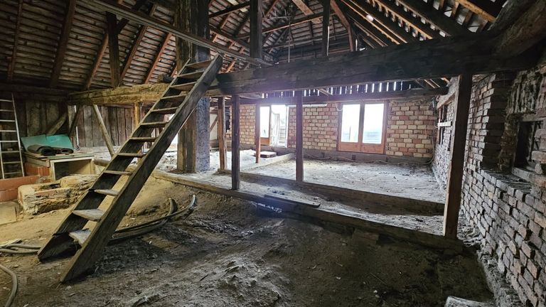 Der Dachboden befindet sich im rohen Zustand und wartet auf einen Ausbau.