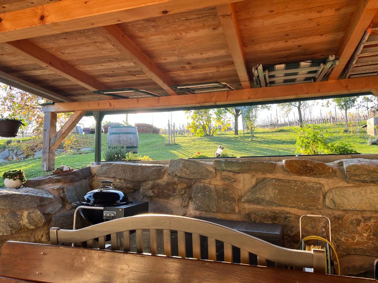 • Großzügige, überdachte Terrasse mit blick in den Weingarten