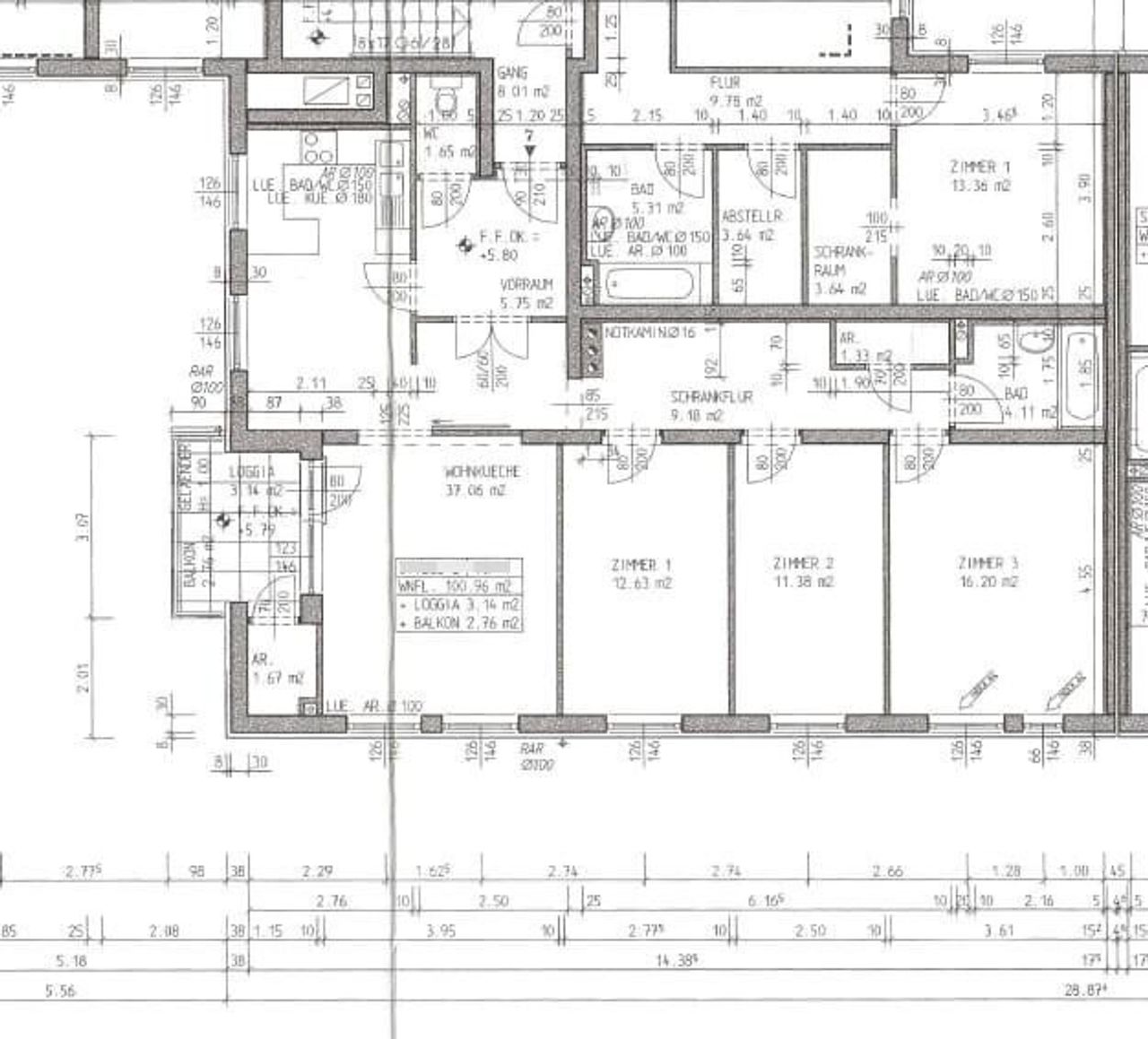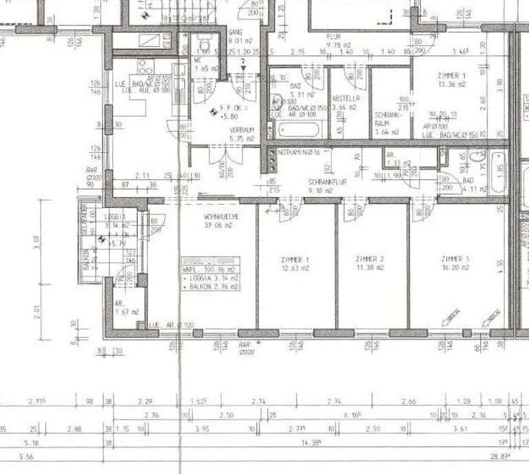 - Wohnessküche 37,06 m², Küche und Essbereich verfliest, Wohnbereich mit Parkett ausgestattet, Zugang zur südöstlich gelegenen Balkon und Loggia mit Fernblick