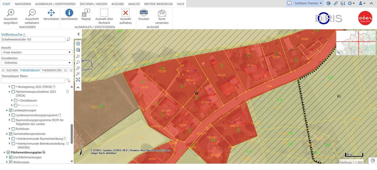 Die Grundstücksparzelle 1615/6 ist aktuell unbebaut und kann gemäß aktuellen Bauvorschriften und unter Einhaltung der Oberösterreichischen Bauordnung bebaut werden.