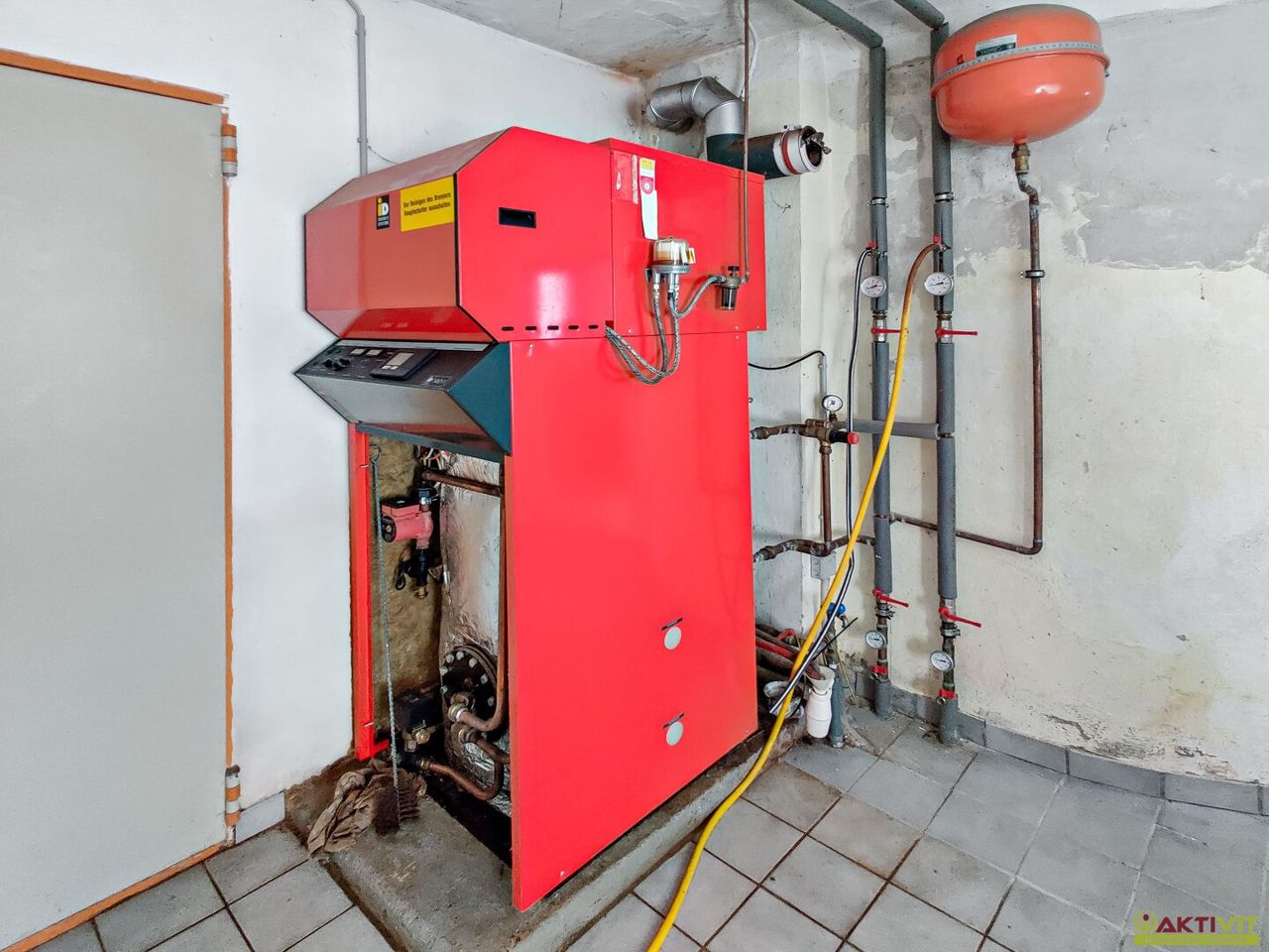 - Erdgeschoss (EG): Großer Vorraum, Drei Zimmer, Küche, Badezimmer, sowie weitere Lagerräume für Heizung, Pellets und Technik.