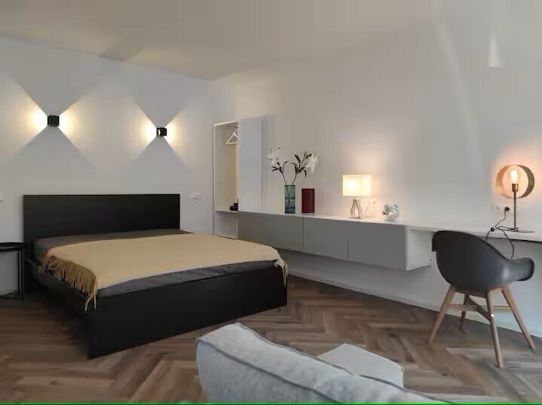 Die Wohnung befindet sich im Hochparterre und wurde 2022 komplett saniert. Sie teilt sich auf in einen Vorraum, ein Badezimmer mit großzügiger Walk-In Dusche und einen Wohnraum. Das klare Highlight des Art Apart ist der gemütliche Wohnraum. Dieser bietet eine Küche, einen Relax-Bereich mit Couch, Flachbild TV und Arbeitsplatz, sowie eine Schlaf-Ecke mit einem gemütlichen Bett für zwei Personen.