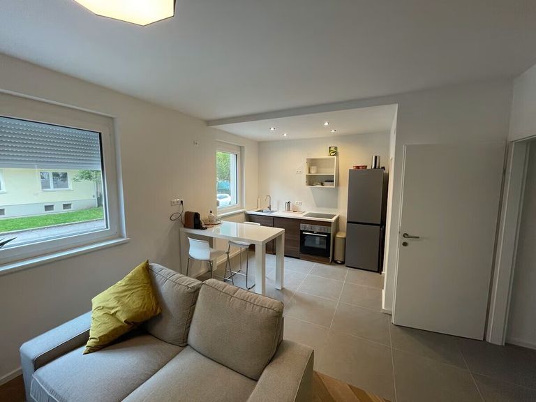 Die Wohnung befindet sich im Hochparterre und wurde 2022 komplett saniert. Sie teilt sich auf in einen Vorraum, ein Badezimmer mit großzügiger Walk-In Dusche und einen Wohnraum.