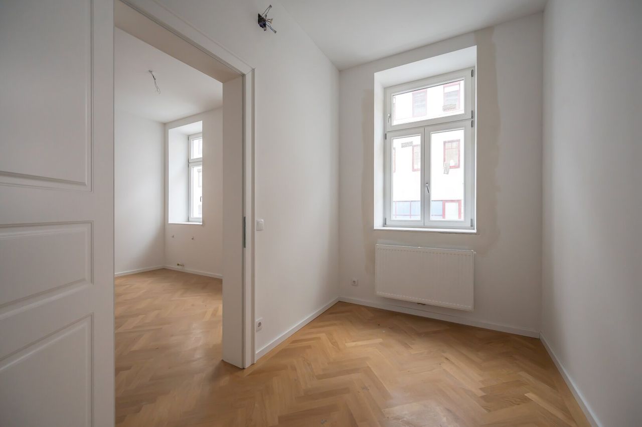 Das Projekt wurde mit großer Sorgfalt generalsaniert, wobei auf hochwertige Materialien und Stilelemente des Wiener Altbaus geachtet wurde: