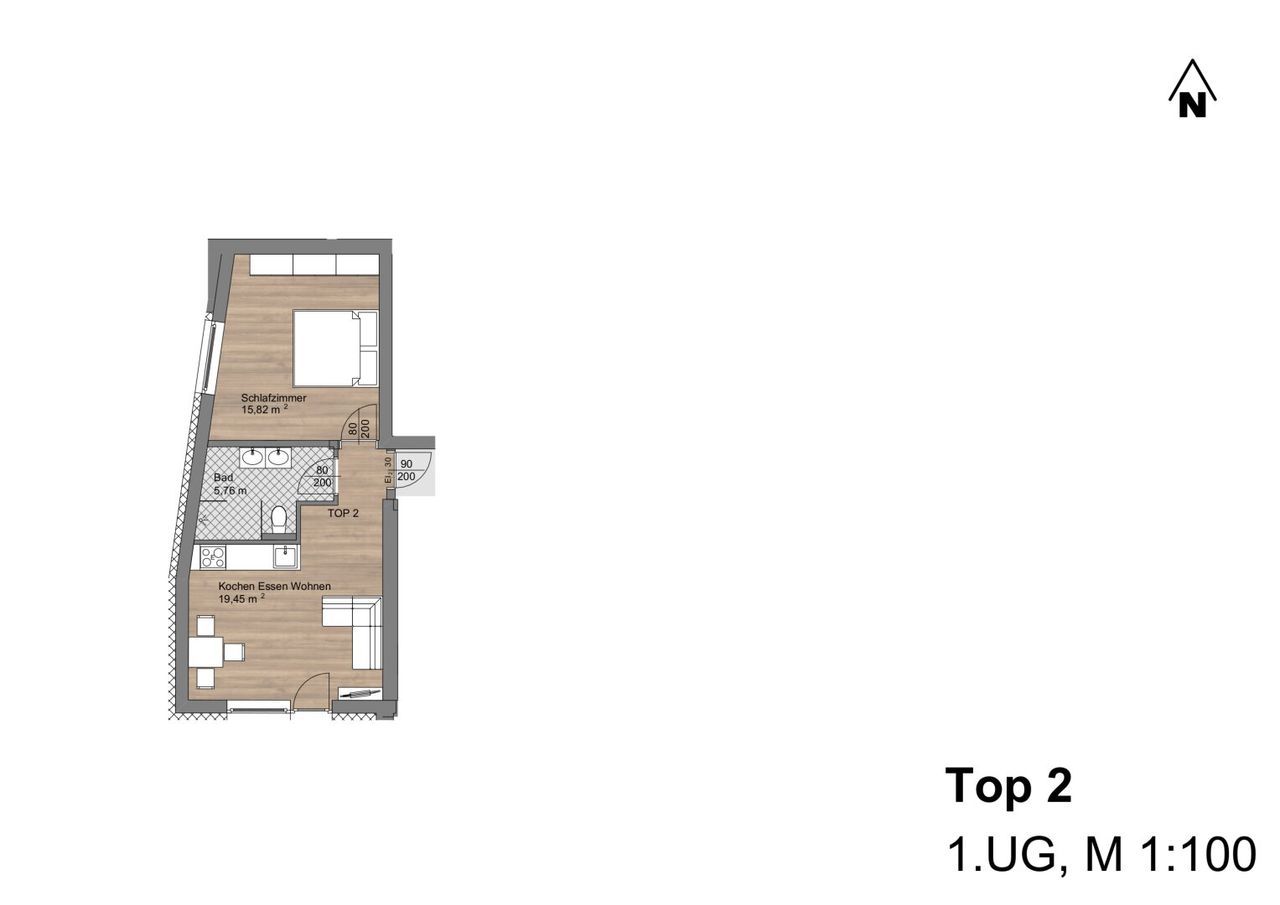 Das Ferienappartement Top 02 besteht aus einem großen Wohn- Küchenbereich, einem geräumigen Schlafzimmer und einem komplett ausgestatteten Badezimmer mit WC, Waschbecken,