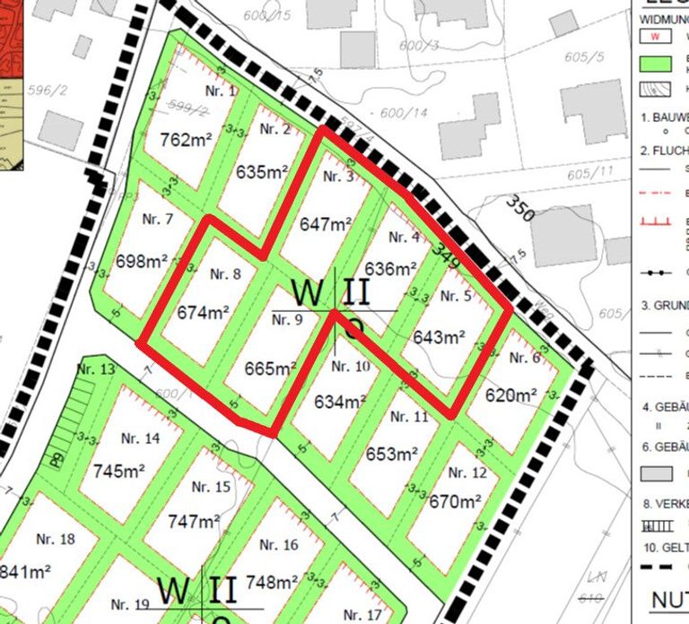 Der Grundstückspreis beträgt € 180,-/m² inkl. Geometerkosten und exkl. Aufschließungsgebühren. Der Bebauungsplan ermöglicht eine vielseitige und sehr individuelle Bebauung. Vom Einfamilienhaus bis hin zum kleinen Reihenhaus ist hier vieles möglich.