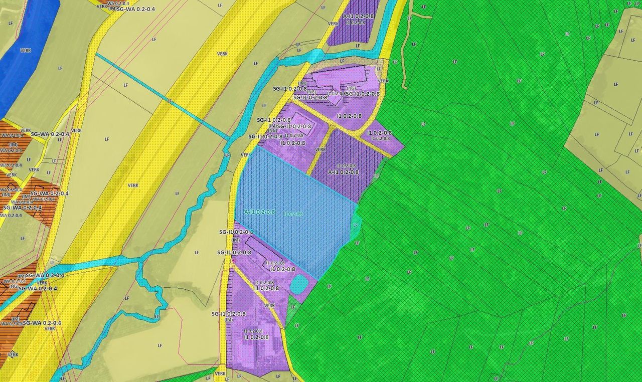 Das Grundstück mit der Grundstücksfläche von ca. 17.125m² ist im Flächenwidmungsplan als Aufschließungsgebiet für Industrie 1 mit einer Bebauungsdichte von 0,2 - 0,8 festgelegt.